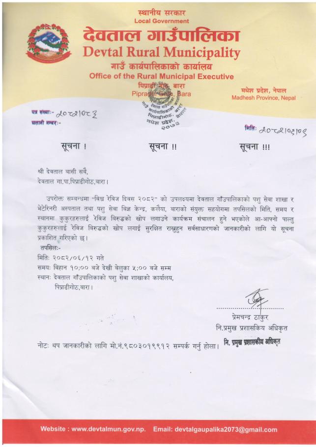 » आ-आफ्नो घरपालुवा कुकुरहरुलाई रेविज बिरुद्धको खोप लगाउने सूचना।