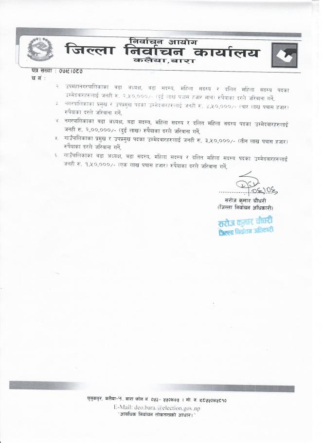 बोलपत्र स्वीकृत सम्बन्धी आश्यको सूचना।