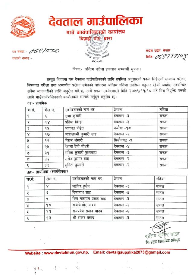 विभिन्न तहको शिक्षक पदको अन्तिम नतिजा प्रकासन सम्बन्धी सूचना