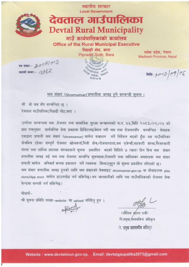 श्रम संसार प्रणालीमा आबद्ध हुने सम्बन्धी सूचना।